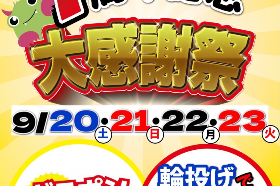 【前橋店】7周年記念大感謝祭 9/20~9/23に開催!